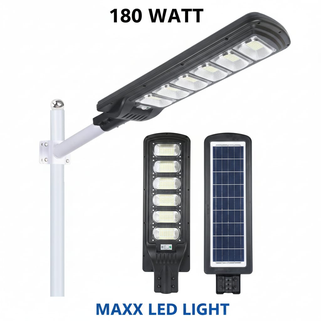 Solar Street Light 180 Watt by Maxx Led Light is the ultimate solution for projects that demand maximum brightness, wide coverage, and dependable performance. With smart controls, heavy-duty construction, and advanced solar technology, it delivers powerful outdoor lighting without ongoing energy costs.